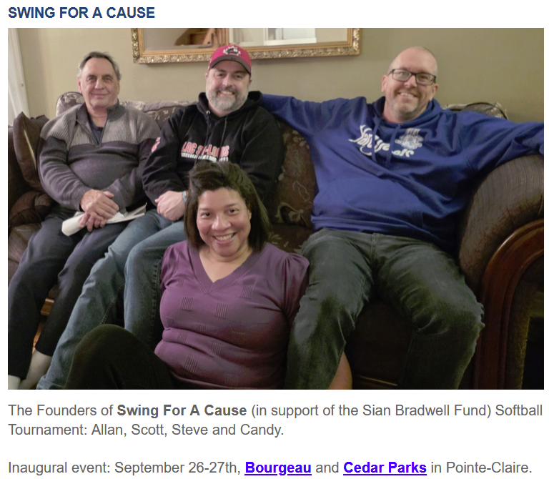 New softball tournament to benefit the Sian Bradwell Fund: Swing For A Cause